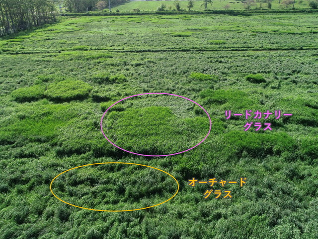 地下茎を持つシバムギ、リードカナリーグラスは、面的に広がります。