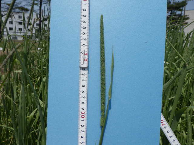 チモシーの穂は、円筒形でブラシ状に10cm以上の長い穂となっています。