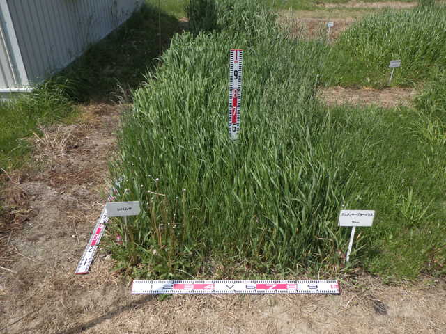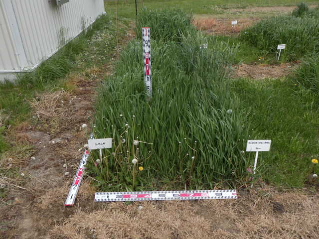 シバムギの草丈が40~50cmをめどにグリホサート系除草剤を散布します。