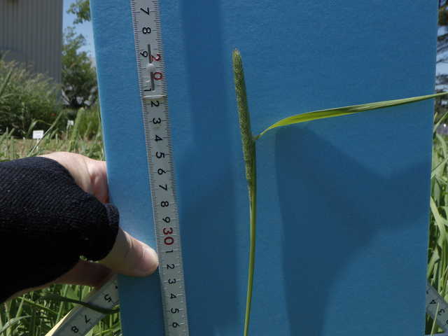 チモシーの穂は、円筒形でブラシ状に10cm以上の長い穂となっています。
